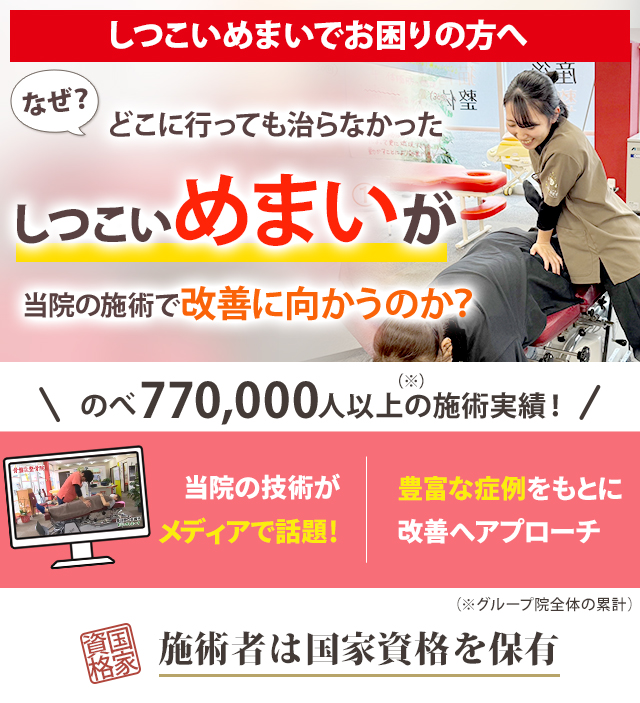 めまいは放っておくと、自律神経がさらに乱れ、めまいが起こりやすい状態が慢性化し、改善しにくくなる恐れがあります。